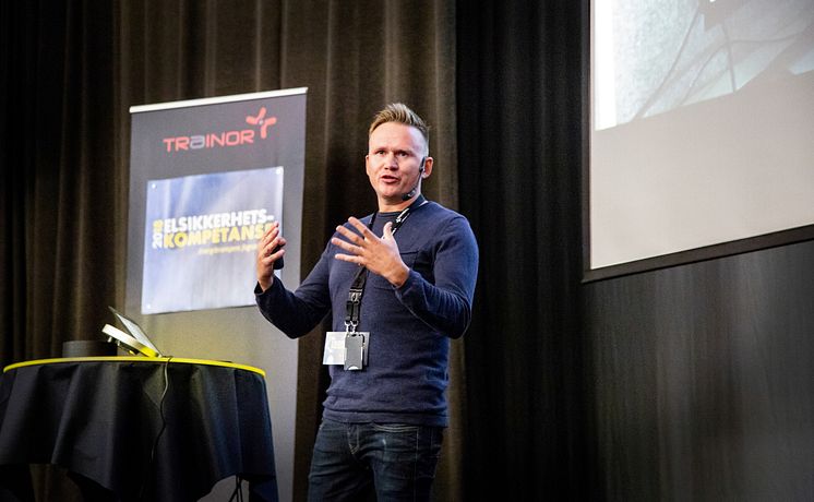 Teamleder for e-læring, Kåre Vegar Sund, taler under Elsikkerhetskompetanse 2018 - energibransjens møteplass