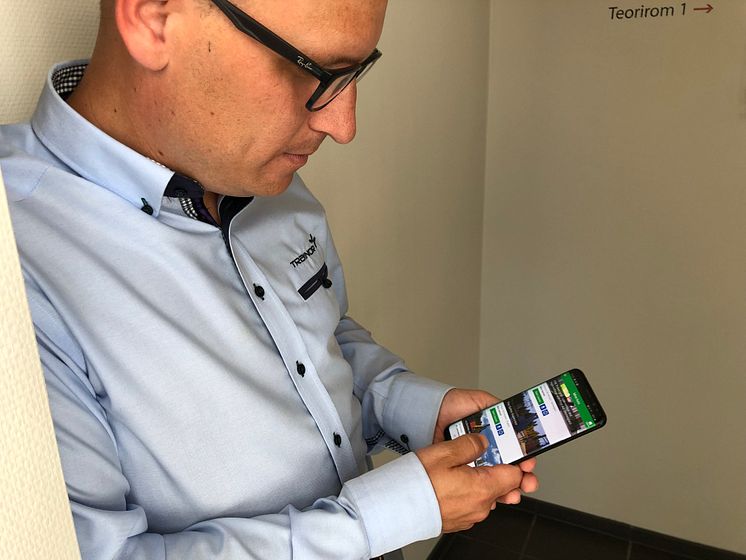 Lars Bratli er leder for Team Digital i Trainor Elsikkerhet AS. Her viser han frem Trainorappen, en app som blant annet gir deg mulighet til å ta e-læringskurs selv uten nettilgang.