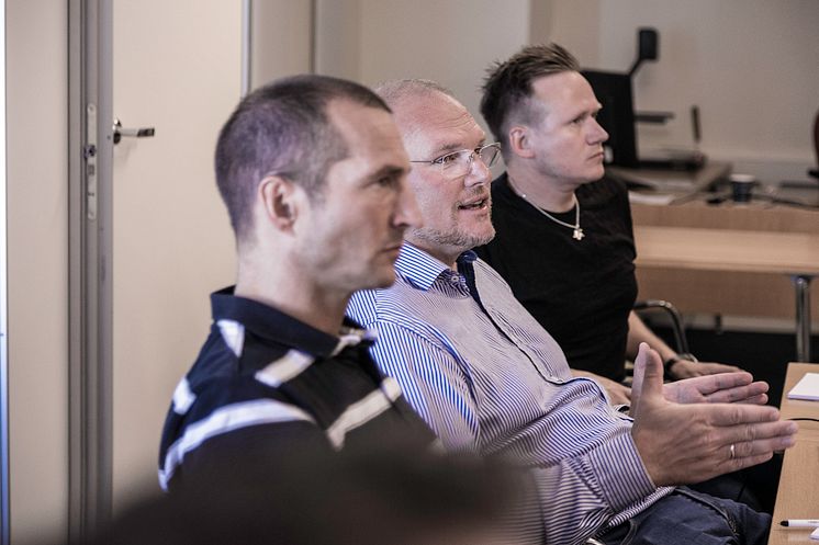 Prosjeltleder Tommy Lundekvam (i midten) og kreativ leder Kåre Vegar Sund (t.h), mener de har rett metode for å lage et nyskapende kurs med høyt læringsutbytte. Tommy ... fra Hafslund har bidratt med brukerinnsikt og fagkompetanse.