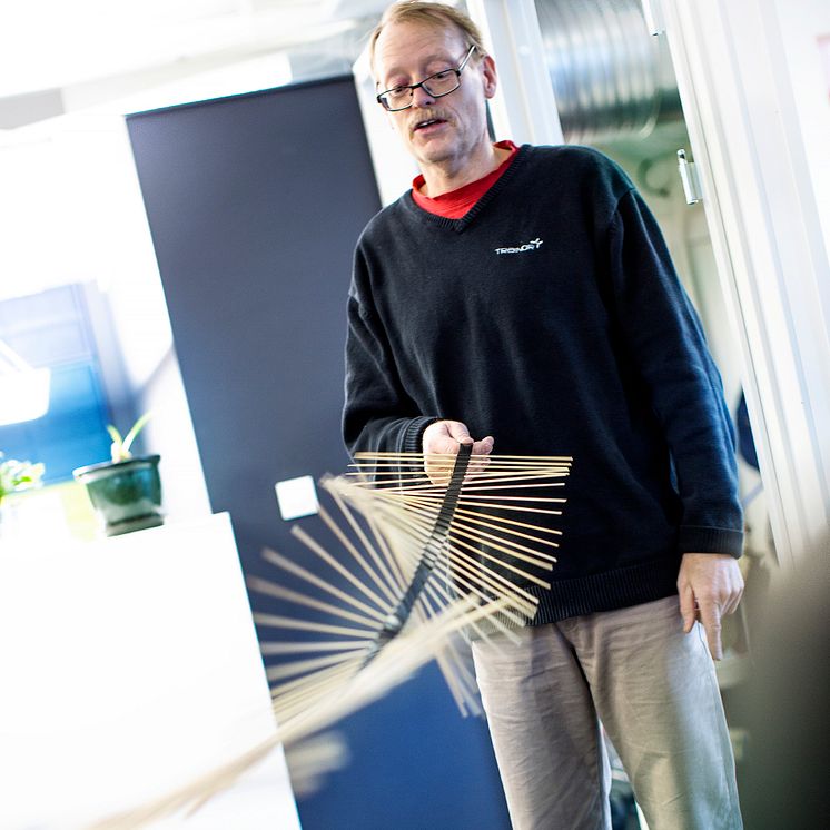 Seniorinstruktør Rune Øverland demonstrerer utbredelse og refleksjon av bølger.