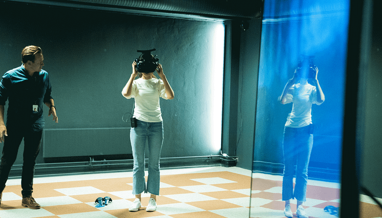 Kåre Vegar Sund demonstrerer VR i Trainors VR-lab.
